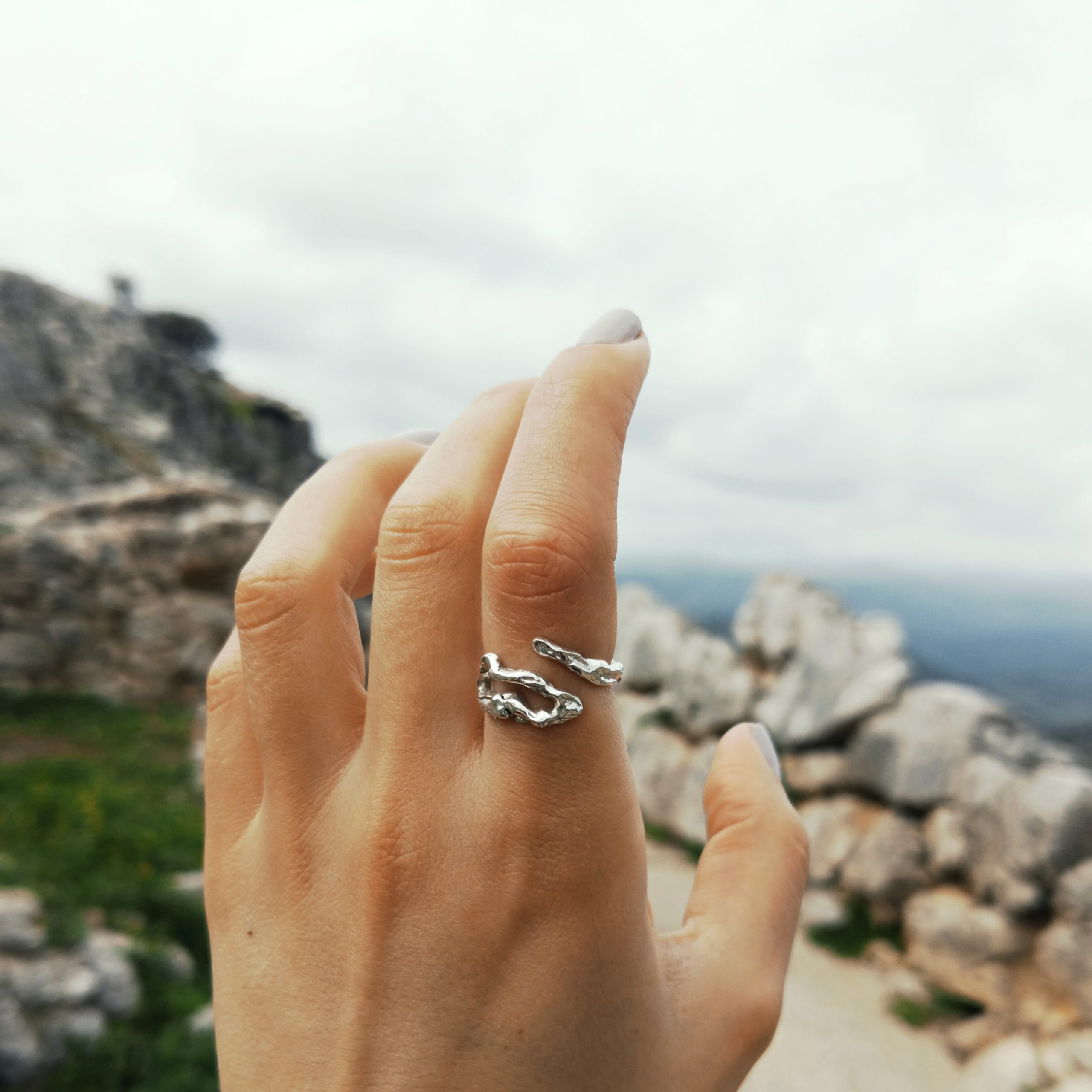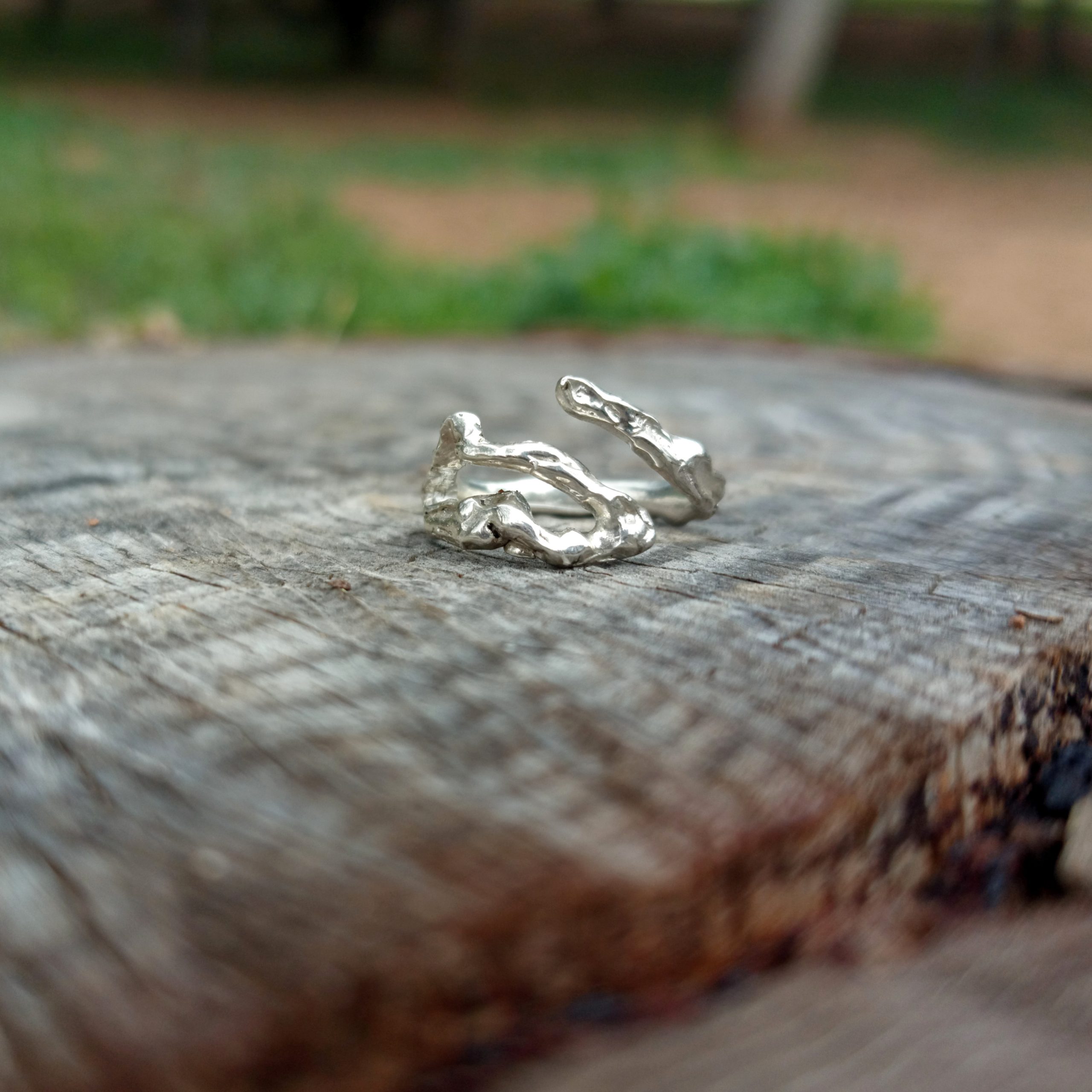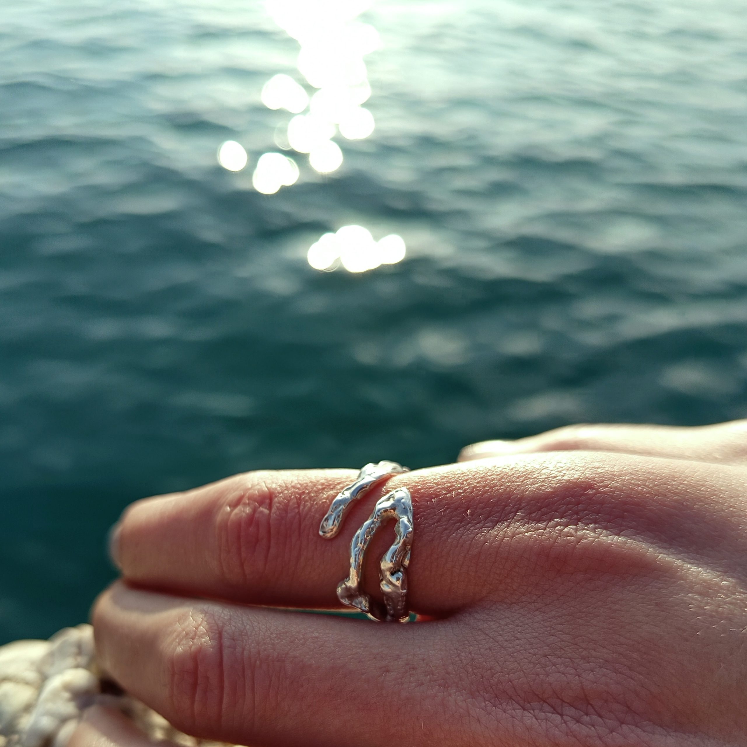 Abstract shaped 925 silver ring. Its adjustable size ensures a perfect fit for all fingers.